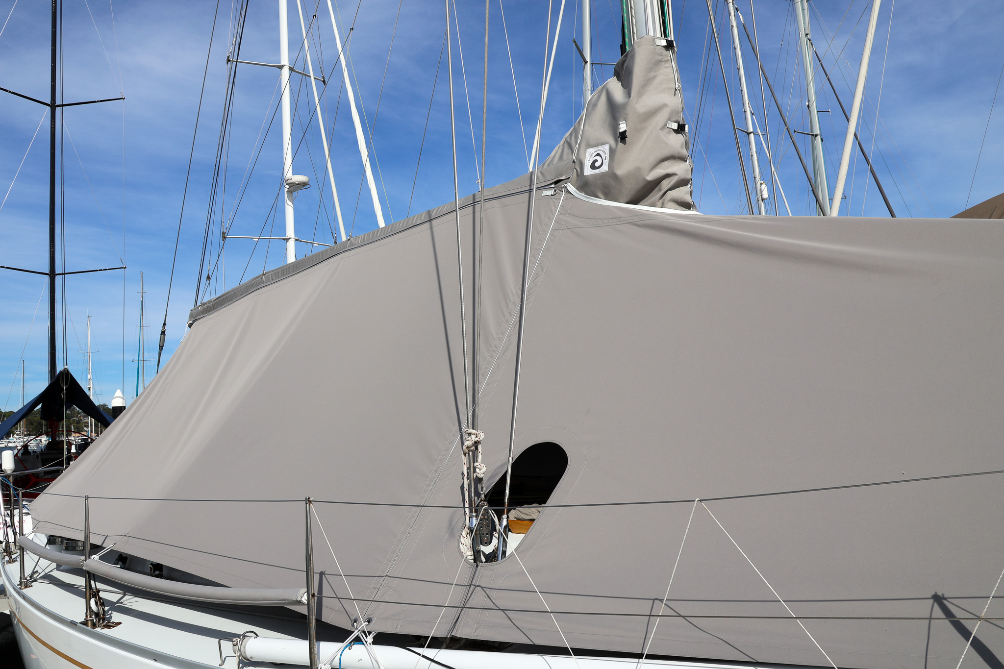 The overall protection cover zips to the Boom Bag and extends over the entire deck, securing to the lifelines or stanchions. Made in three zipped sections—for bow, midship, and stern—it offers flexible use and full protection from sun, rain, salt, and bird droppings. Reinforced in high-stress areas, it’s made from breathable WeatherMax canvas with marine-grade fittings and includes a storage bag.