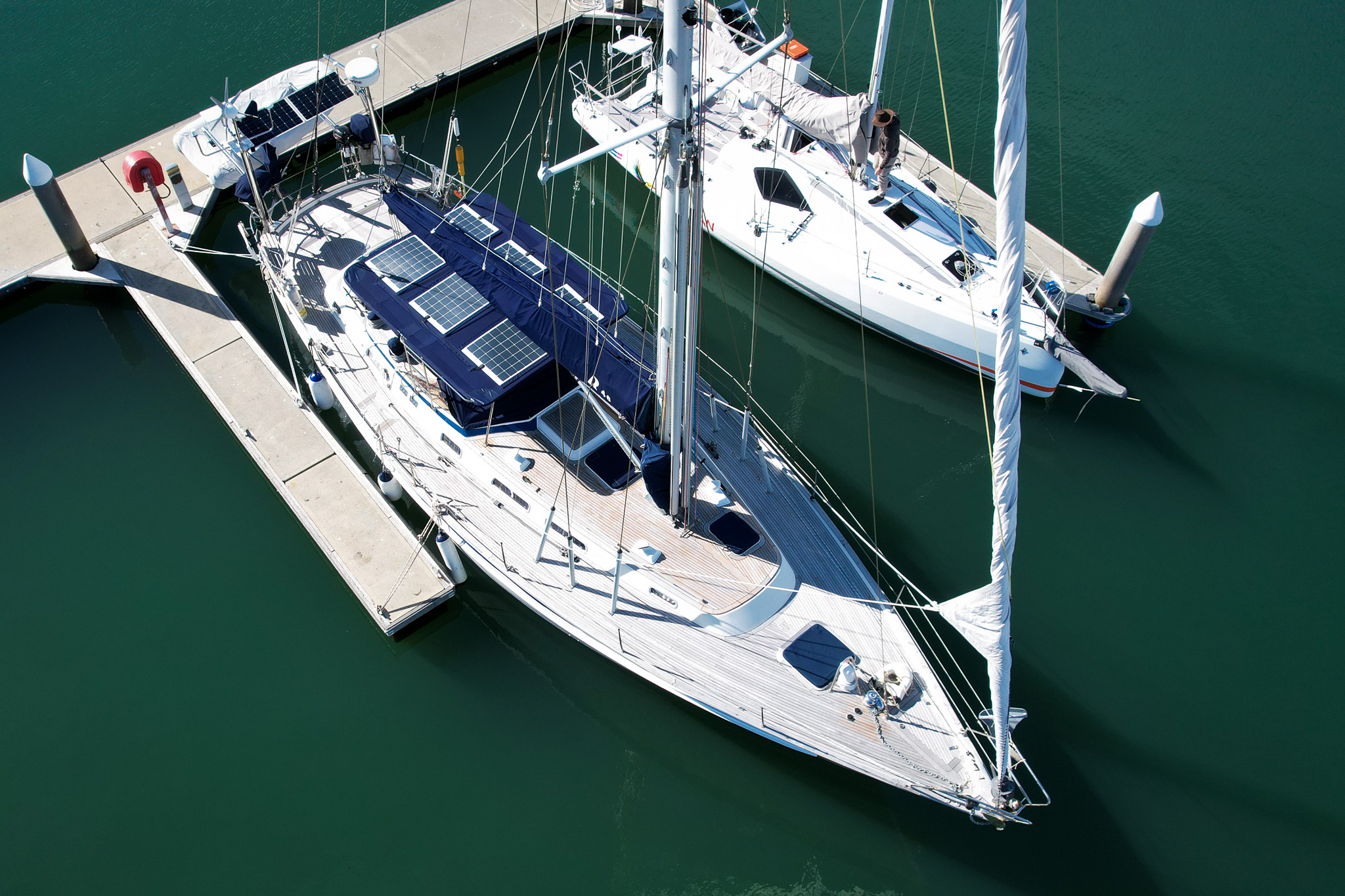 At Ocean Covers, we specialise in the design and construction of custom Bimini structures that integrate flexible solar panels into robust, marine-grade stainless steel frames. Our solar Biminis are tailored for centre cockpit yachts, delivering long-term cockpit protection while supporting sustainable energy generation—ideal for offshore cruising or extended stays aboard.